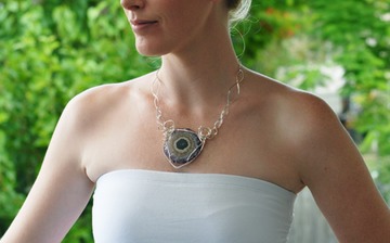 Amethyst Stalactite Slice Wire Sculpted Necklace